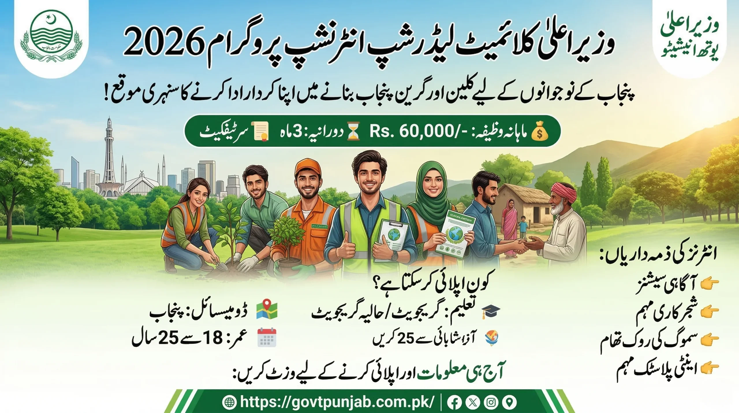 The CM Climate Leadership Internship is one of the most impactful initiatives launched by the Government of Punjab to involve young graduates in environmental protection and climate awareness. At a time when Punjab is facing serious environmental challenges such as smog, pollution, and rising temperatures, this internship provides a golden opportunity for youth to step forward and become part of the solution.