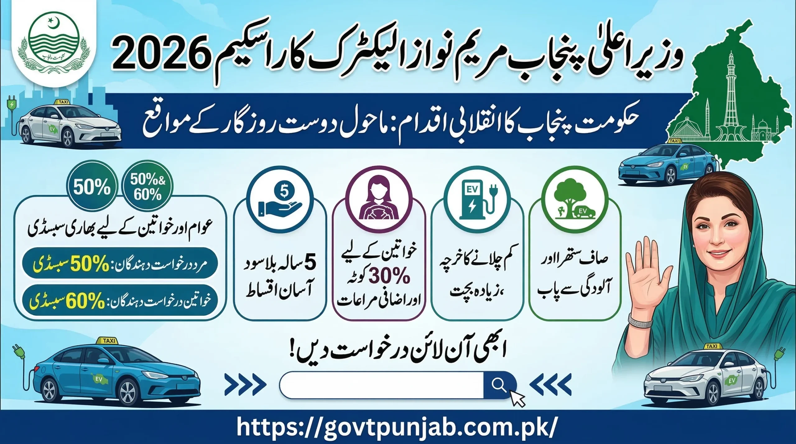 The Maryam Nawaz Car Scheme 2026 is a government-backed program launched to provide electric taxis to eligible individuals in Punjab on easy and affordable terms. The main goal of this scheme is to replace fuel-based vehicles with eco-friendly electric vehicles (EVs) while also supporting self-employment.